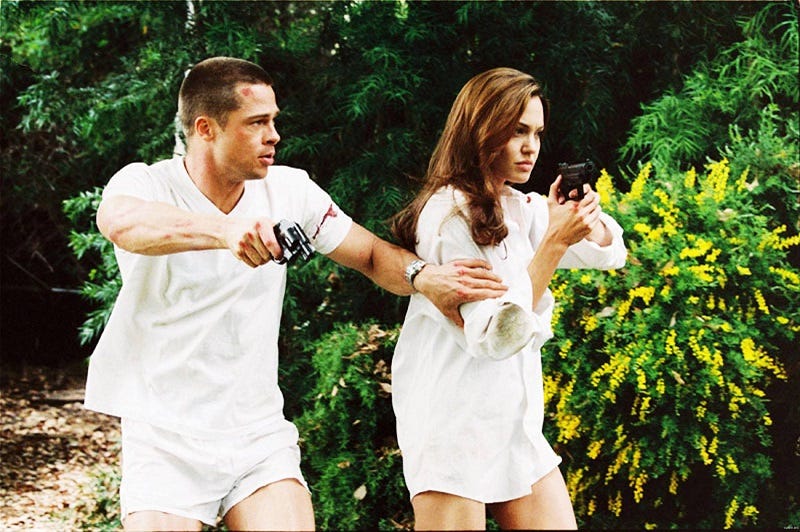 Dee fymous 2005 f LICK stars Brad Pitt and Angelina Jolie as a bored upper middle class married couple, who are surprised to learn that they are assassins.